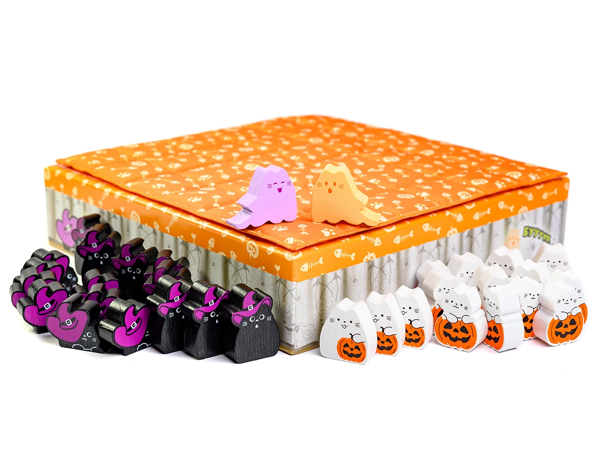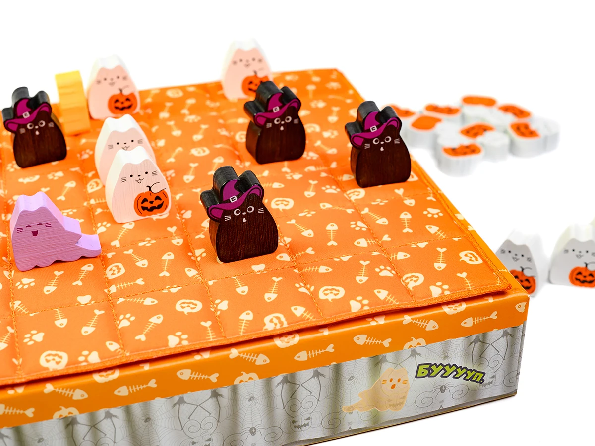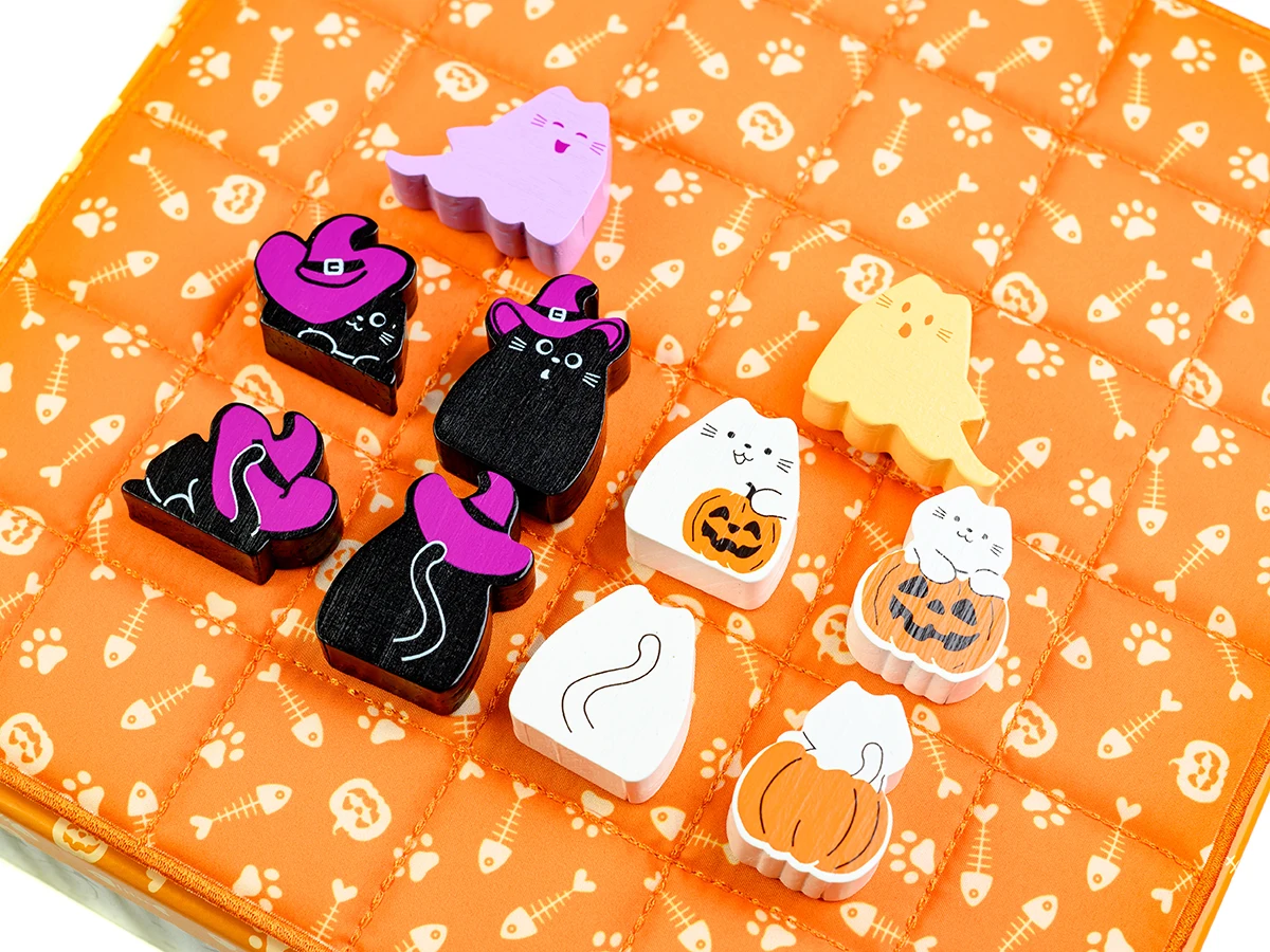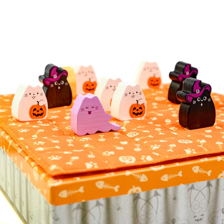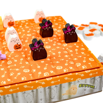 - Для перемоги вишикуйте трьох котів у ряд або розмістіть всі 8 фігурок котів на ігровому полі.
