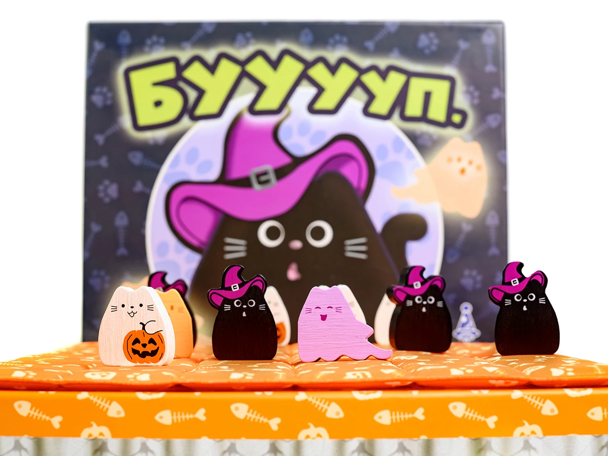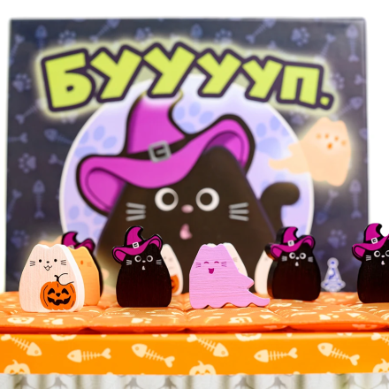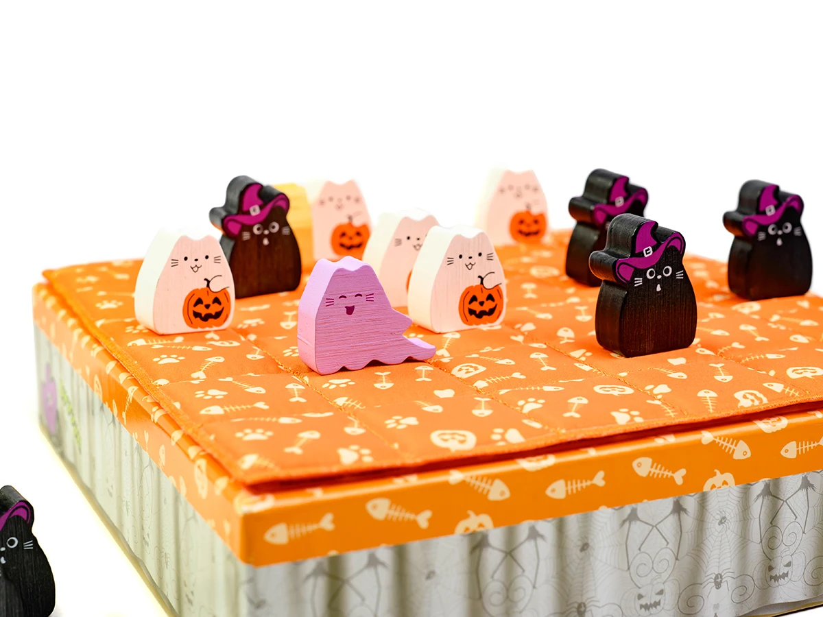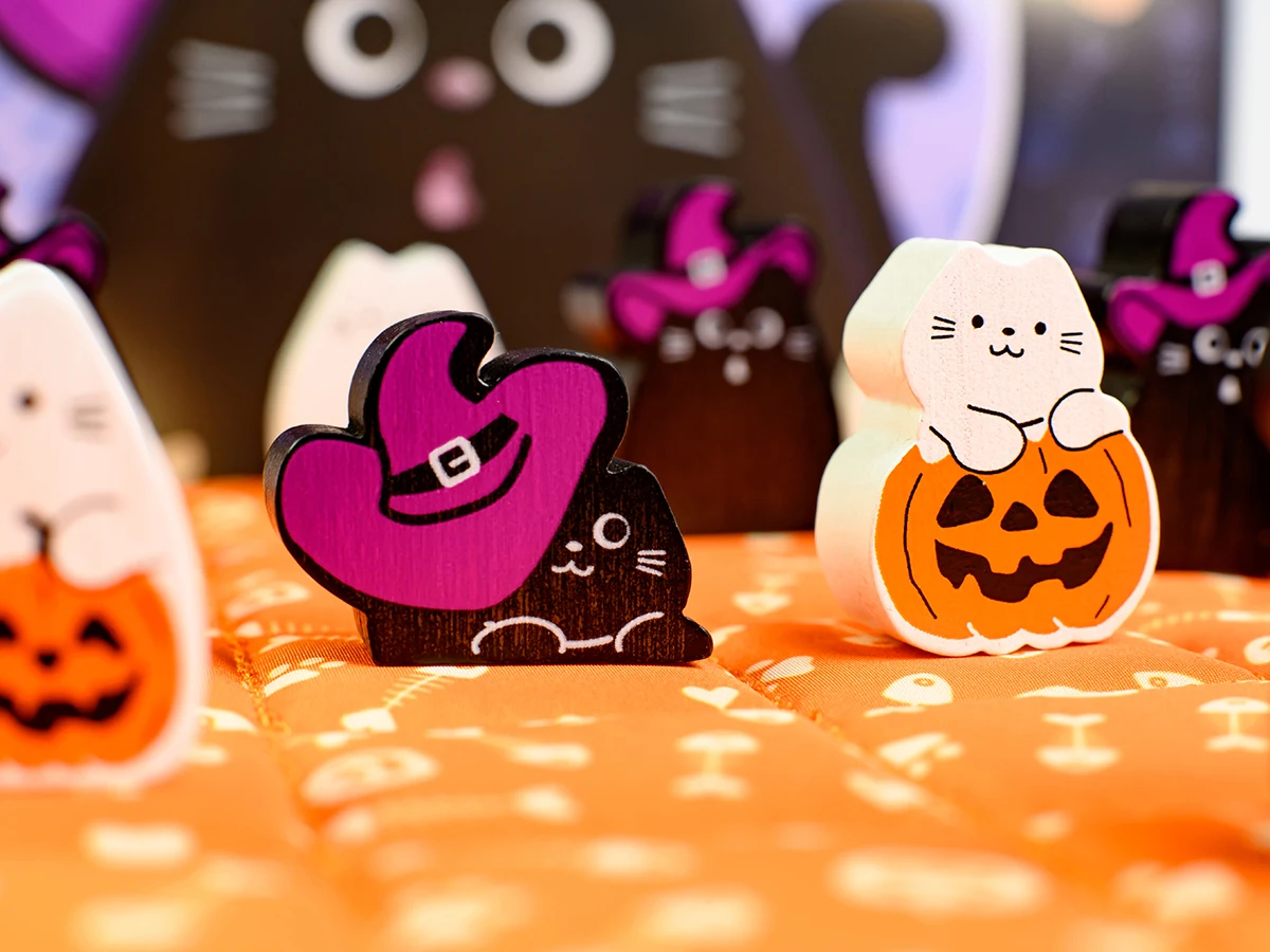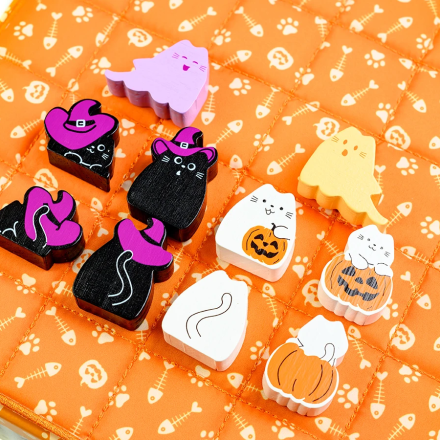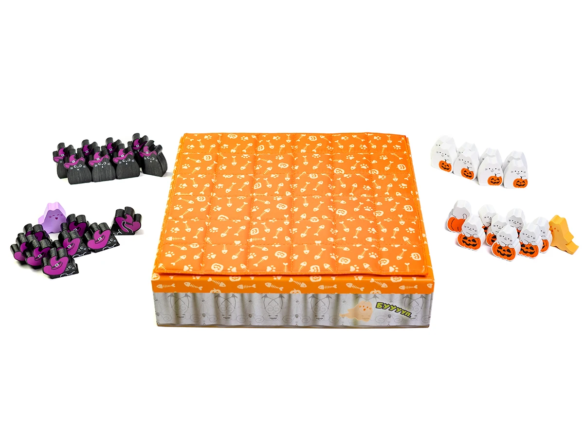 - Для перемоги вишикуйте трьох котів у ряд або розмістіть всі 8 фігурок котів на ігровому полі.