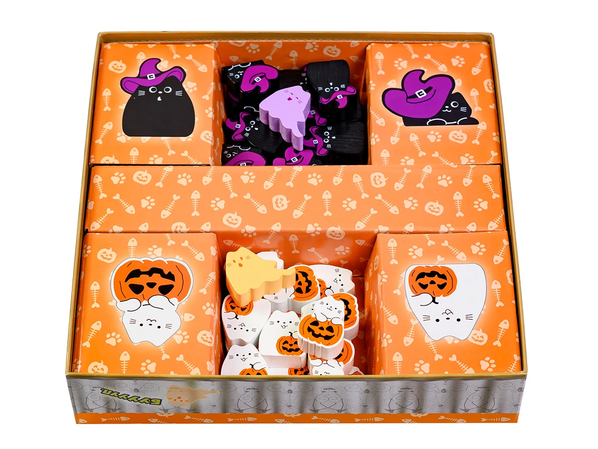 - Розміщене кошеня бупає всіх сусідніх кошенят, відштовхуючи від себе на одну клітинку. Якщо фігурка була виштовхнута з ліжка, то повертається до запасу гравця.