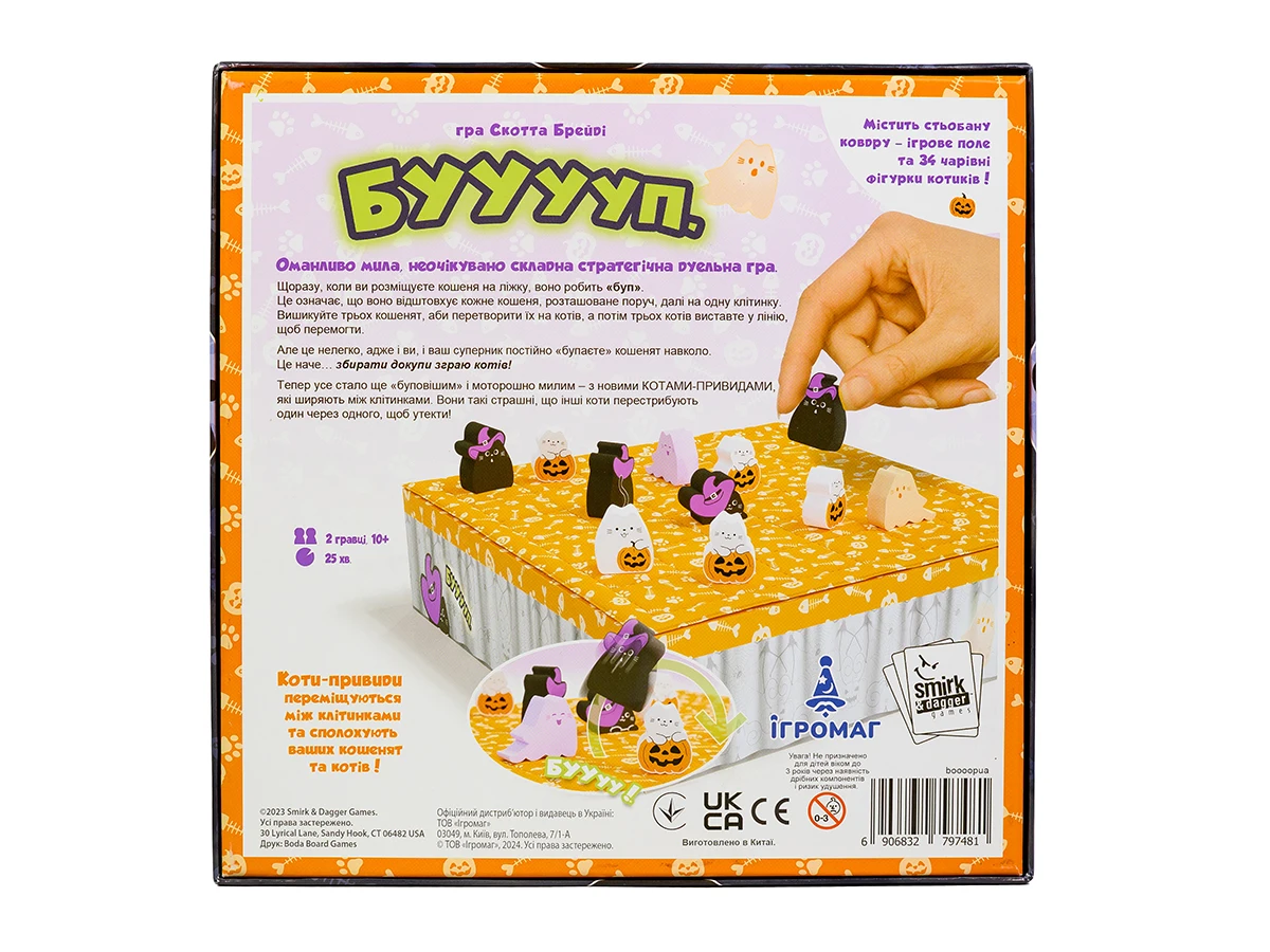 Щоразу, коли кошеня розміщується на ігровому полі... буп – всі сусідні кошенята відстрибують від нього на одну клітинку. Щоб перемогти, треба спочатку перетворити трьох кошенят на котів, а потім утворити лінію з трьох дорослих котів.