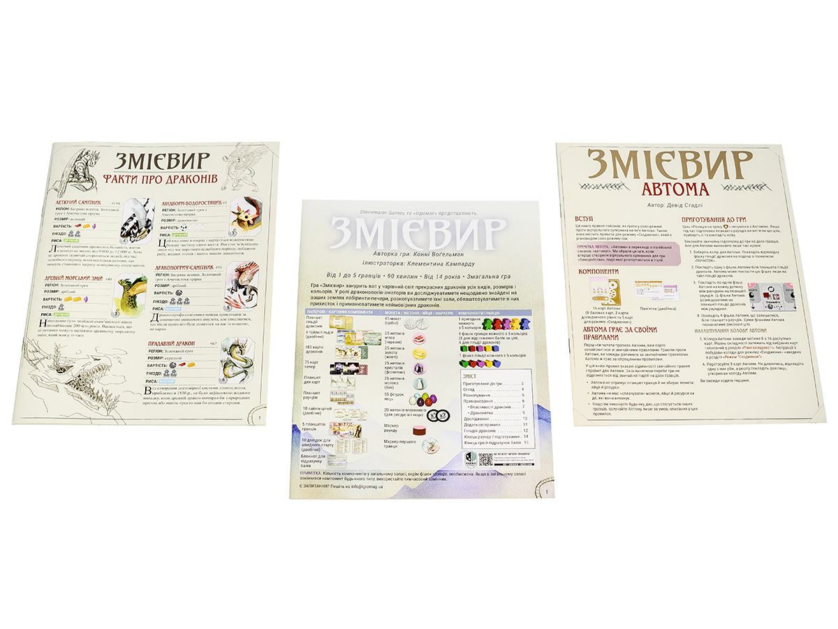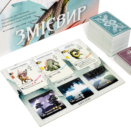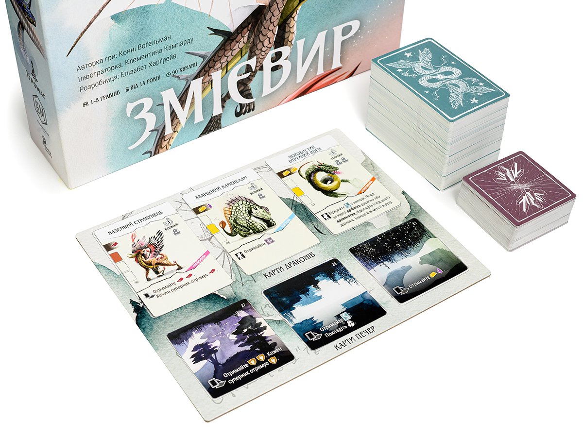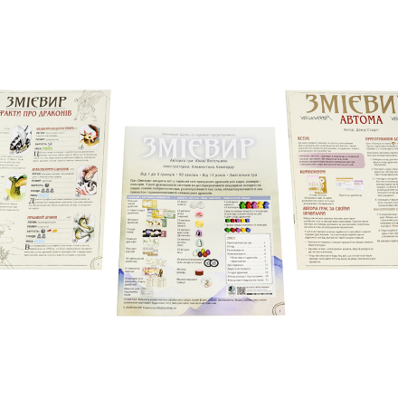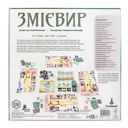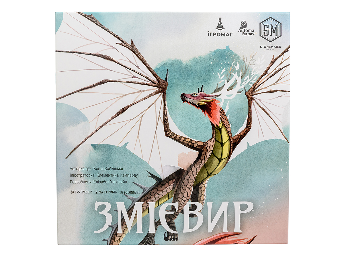 Змієвир (Wyrmspan) — це фантазійна євро-гра на драфт для 1-5 гравців із мінімальним даунтаймом, яка перевтілить Вас у справжнього драконолога на 60-90 хвилин. Це гра про колекціонування унікальних крилатих драконів на килимку гравця та отримання балів за яйця, збережені ресурси, тайли цілей та іншого аби отримати звання найкращого драконолога. Розкопайте власний унікальний лабіринт печер для різних видів драконів, щоб запросити їх на ночівлю, а все для того, аби здобути прихильність цих безмежно великих створінь та їх могутніх Гільдій.