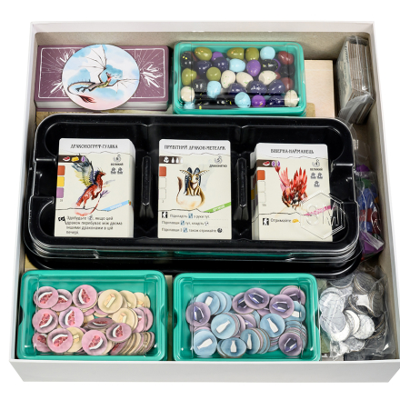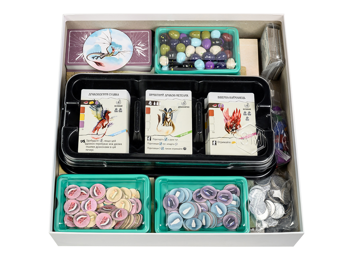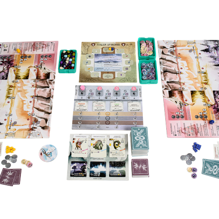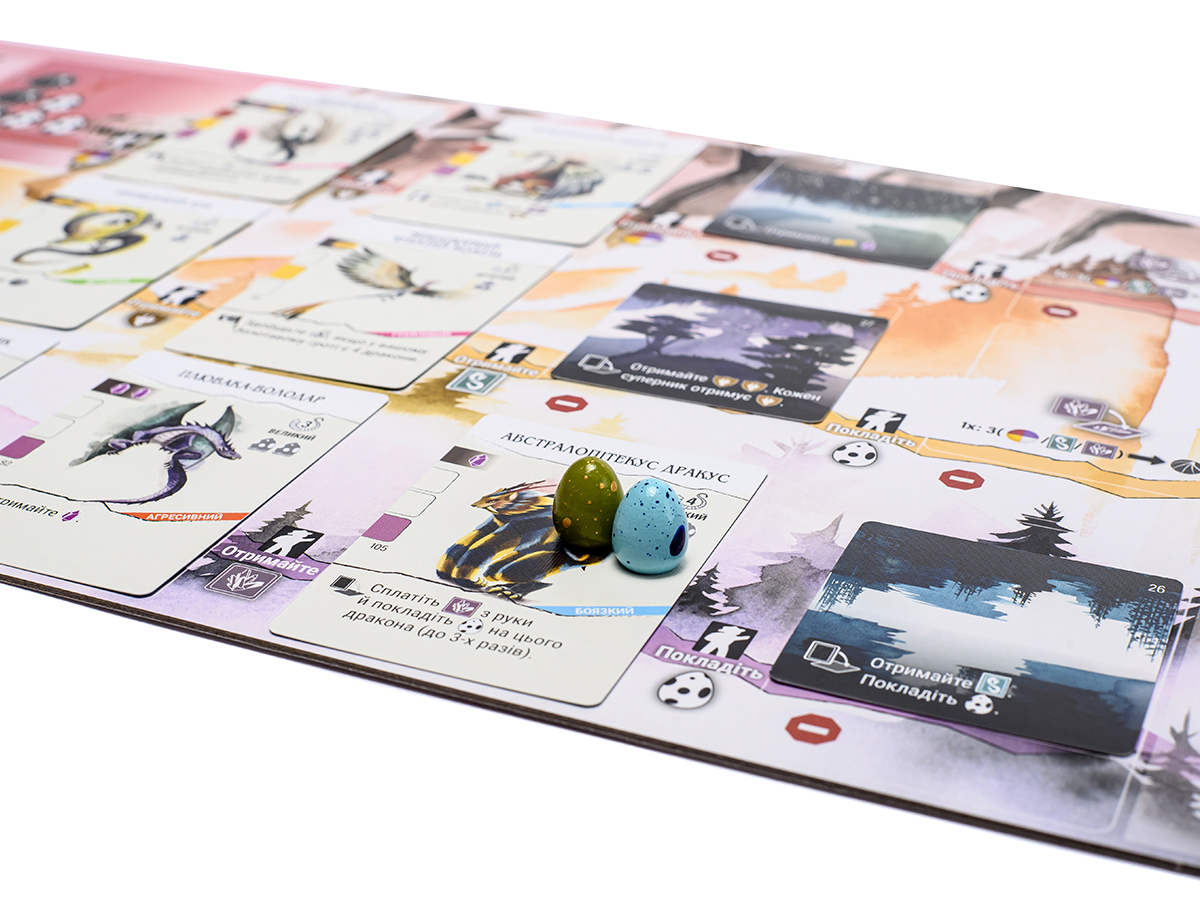 Але пам'ятайте: дбайливо накопичені ресурси та яйця конвертуються в переможні бали наприкінці гри! Прислухайтесь до примх своїх драконів, й тоді будете винагороджені просуванням вперед у Гільдії Драконів — а це додає значних бонусів. Партія триває 4 раунди, кожен з яких триває допоки усі гравці не спасують. Гравець може спасувати у двох випадках: