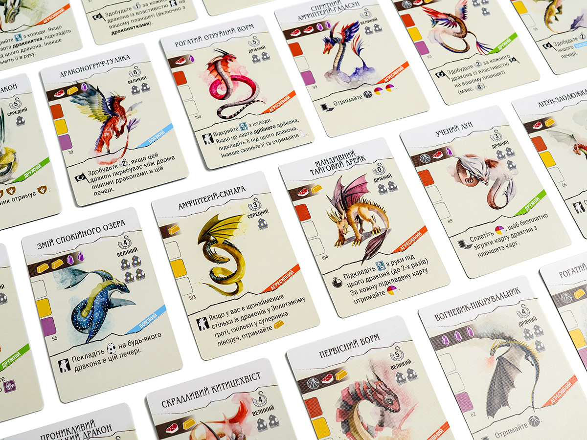 - Особливості драконів: всі 180 драконів у грі є унікальними, внаслідок чого їхні картки не є взаємозамінними. Кожен з них певним чином впливає на хід подій: одні дракони воліють бути з іншими, а деякі навпаки — уникають їх. Дорослим володарям вогню притаманний будь-який розмір (малий, середній або ж великий) та одна з чотирьох рис характеру — агресія, грайливість, дбайливість та сором’язливість. Маленькі ж дракончики потребують особливої уваги. Наприклад, для їхнього народження витрачаються яйця та молоко, а для росту вони додатково потребують м’яса, молочка та друзів, аби не нудьгувати. За кропітку турботу дракончики приносять ігрові бонуси.