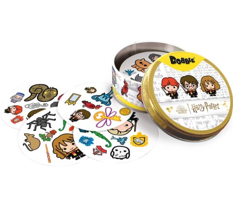 У невеликій бляшаній коробочці з грою ви знайдете 55 карт із зображенням персонажів та предметів із книг про Гаррі Поттера. Кожна картка містить 8 картинок, і головне завдання гравців – знайти пару однакових малюнків на відкритих картках. Це далеко не так просто, як здається, адже потрібно використати максимум уваги та реакції. Правила гри Dobble Harry Potter пропонують кілька різних режимів гри, збільшуючи таким чином реграбельність.