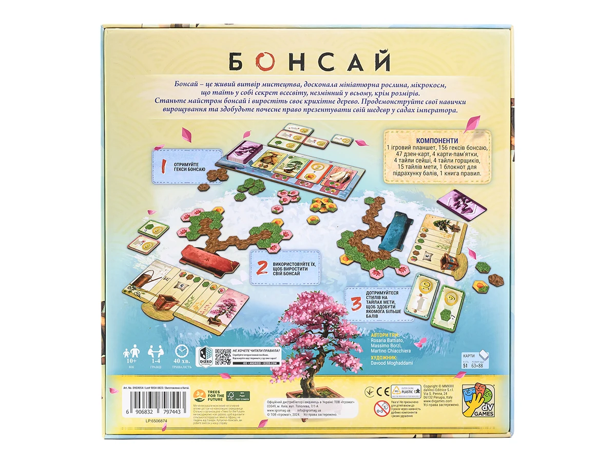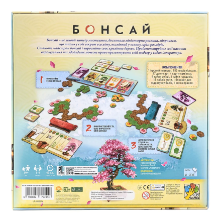 «Бонсай» — абстрактна сімейна гра на розміщення плиток, у якій ви зможете випробувати себе в ролі майстра бонсай. Гравці дбайливо вирощують свої дерева, намагаючись досягти ідеальної форми та здобути честь представити свій витвір у садах імператора. Цей медитативний процес потребує ретельного планування й ідеально підійде тим, хто захоплюється японською естетикою.