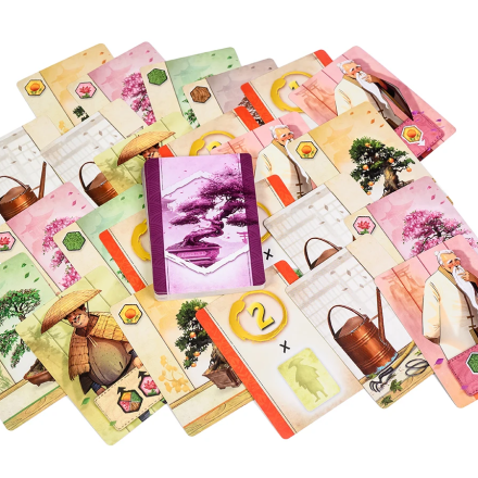 - Медитація. Виберіть одну з відкритих карт на планшеті та візьміть її разом із плитками бонсаю, зображеними під нею. Карти знаряддя та вирощування дозволяють зберігати й розміщувати більше плиток бонсаю, а карти помічника та майстра дають більше ресурсів для створення досконалого дерева. Карти сувоїв принесуть очки наприкінці гри.