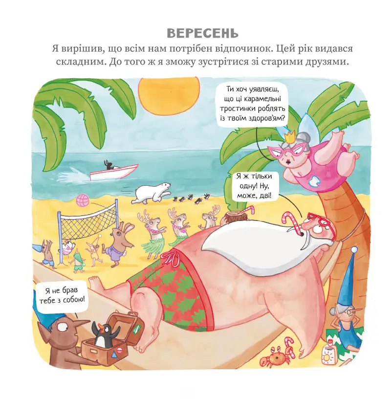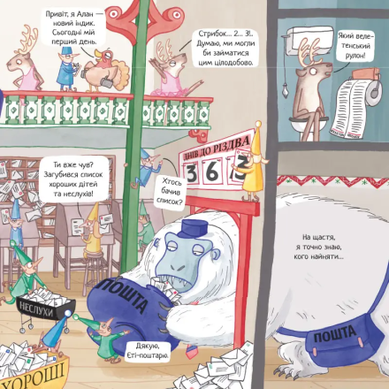 Будьте готові, що «Чарівна майстерня Санти» — це ну дуже весела історія, де у коміксовому вигляді зображений кожний місяць підготовки Санти до Різдва. З нею гарантовано вдасться підняти настрій та пореготати від щирого серця!